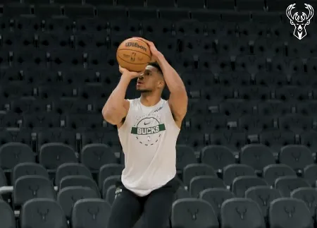 赛前,雄鹿社媒分享扬尼斯-阿德托昆博积极投入热身训练的瞬间。